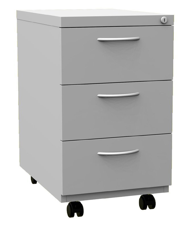 Kancelárske kontajnery mobilné, centrálny zámok, tri štandardné zásuvky. Výška 495 alebo 501, šírka 420, hĺbka 565 mm. Varianta bez hornej dosky alebo s hornou dekoratívnou doskou hrúbky 6 mm. Výsuv zásuviek 80 alebo 100%.