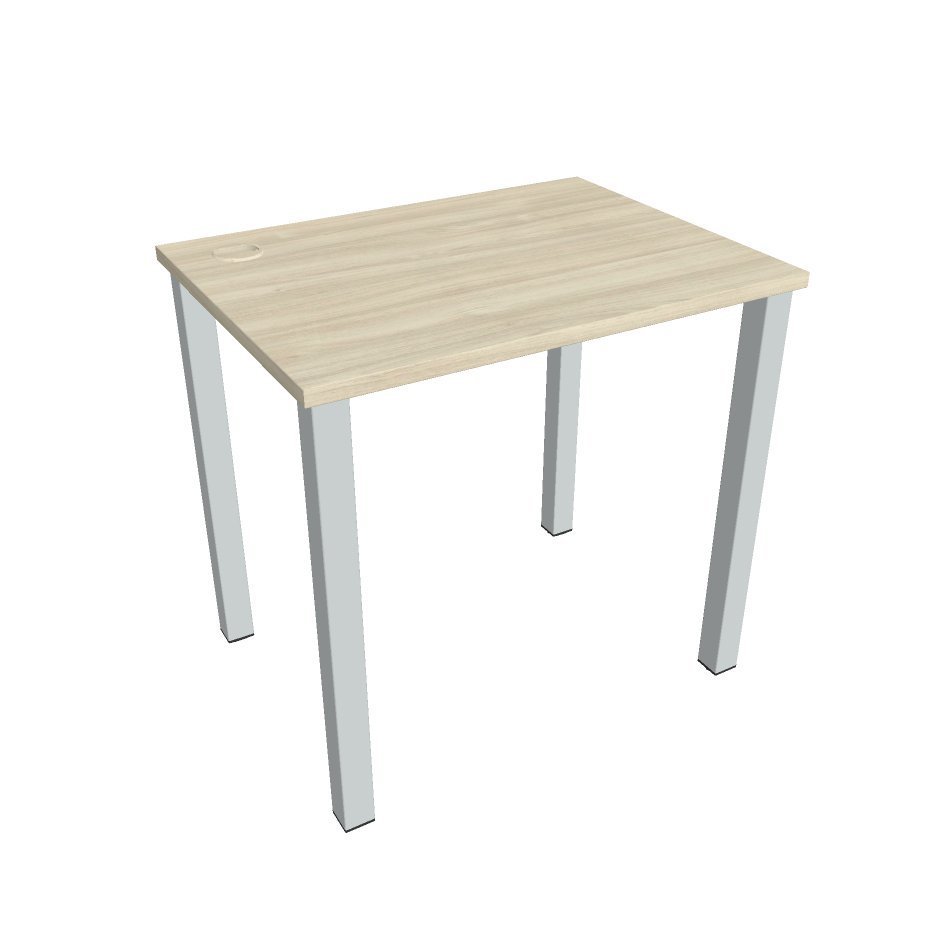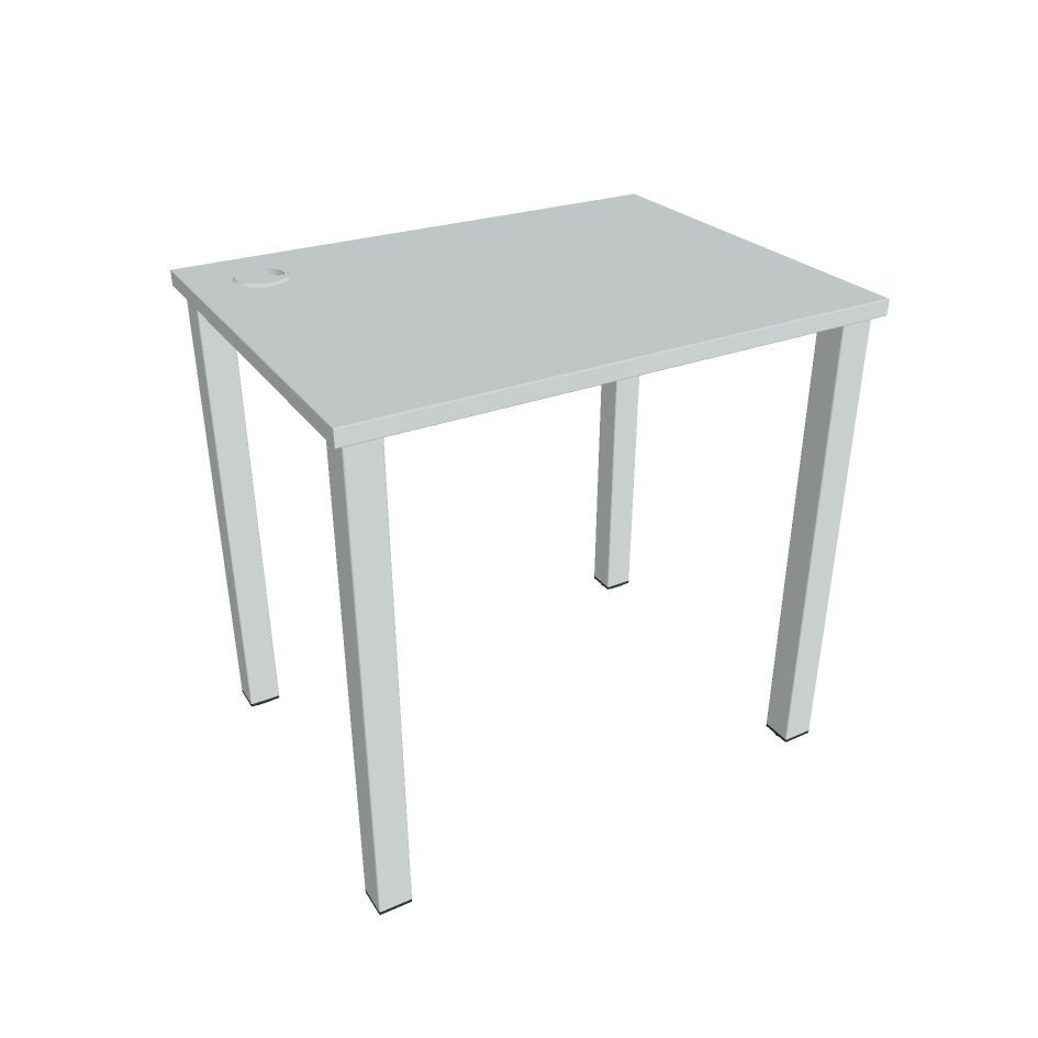 Kancelársky pracovný stôl UNI A s rozmermi 755 x 800 x 800 mm. Pracovná doska je vybavená ABS hranou, ktorá pomáha chrániť stoly pred poškodením.
