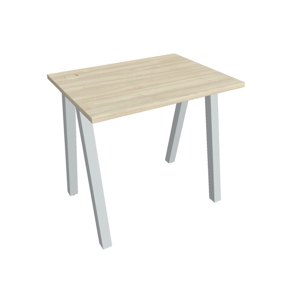 Kancelársky pracovný stôl UNI A s rozmermi 755 x 800 x 800 mm. Pracovná doska je vybavená ABS hranou, ktorá pomáha chrániť stoly pred poškodením.