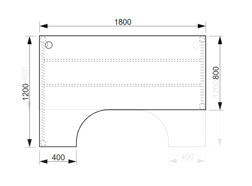 Kancelársky pracovný stôl rohový s rozmermi 755 x 1800 x 1200 mm. Pracovná doska je vybavená ABS hranou, ktorá pomáha chrániť stoly pred poškodením. Súčasťou stolov je praktická priechodka, ktorá zvedie všetky káble pod stôl, kde si s nimi poradia praktické držiaky.