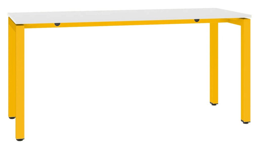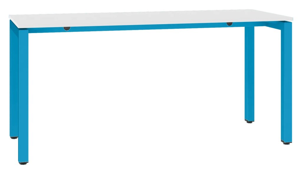 Dizajnový stôl vhodný do kancelárií, rokovacích miestností a open-space. Konštrukcia štvorcové profily 50 x 50 mm, farba na výber z odtieňov RAL. Lamino dosky o sile 18 mm s hranou, farba dosky na výber. Nohy majú rektifikačné pätky umožňujúce výškové vyrovnanie. Výška 745 - 770 mm, šírka 1600  mm, hĺbka 600 mm. Demontovaný výrobok.