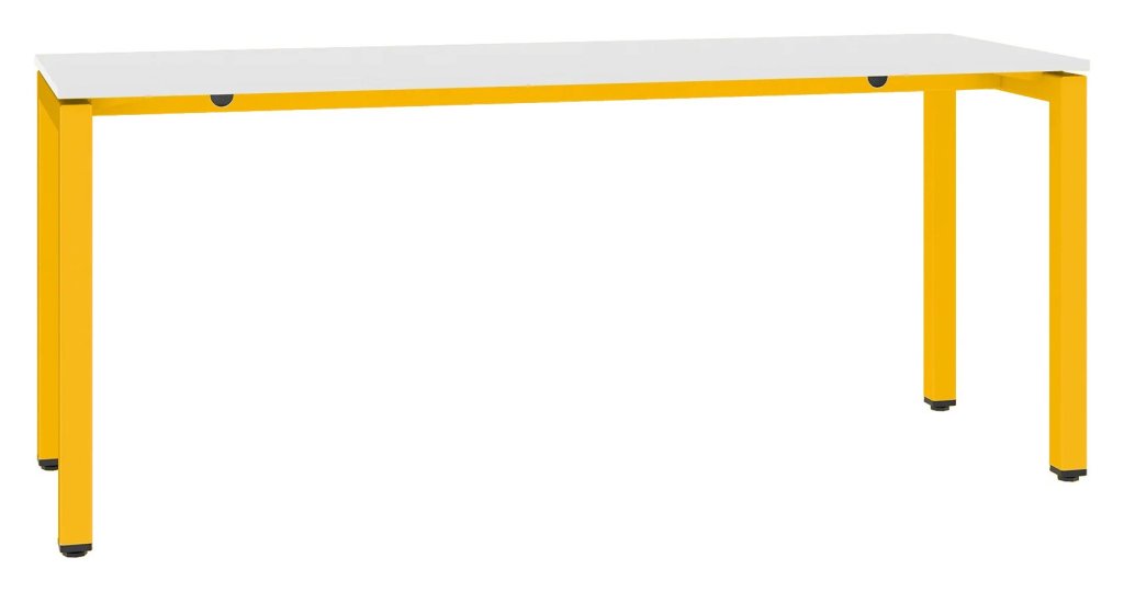 Dizajnové stoly vhodné do kancelárií, rokovacích miestností a open-space. Konštrukcia štvorcové profily 50 x 50 mm, farba na výber z odtieňov RAL. Lamino dosky o sile 18 mm s hranou, farba dosky na výber. Nohy majú rektifikačné pätky umožňujúce výškové vyrovnanie. Výška 745 - 770 mm, šírka 1000/1200/1400/1600/1800 mm, hĺbka 600 mm. Demontovaný výrobok.
