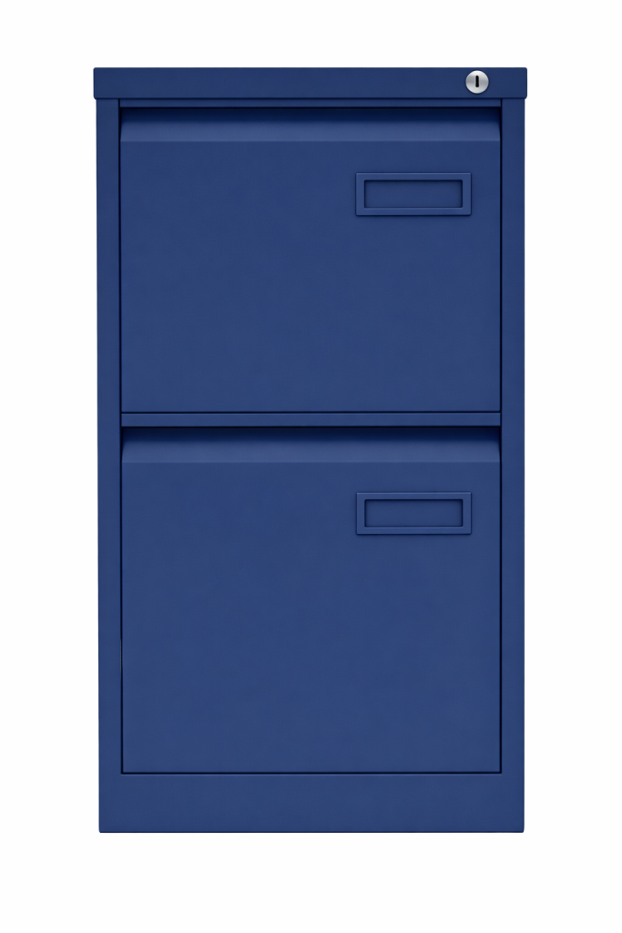 Dvojzásuvková kovová kartotéka pre dokumenty alebo závesné zakladače formátu Foolscap, šírka 470, výška 711, hĺbka 622 mm, centrálny zámok, rôzne farby.