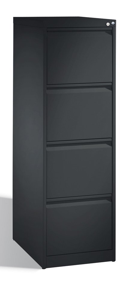 Štvorzásuvkové kovové kartotéky pre dokumenty, závesné zakladače formátu A4 alebo Foolscap. Šírka 413 alebo 470, výška 1321, hĺbka 622 mm, centrálny zámok, rôzne farby.