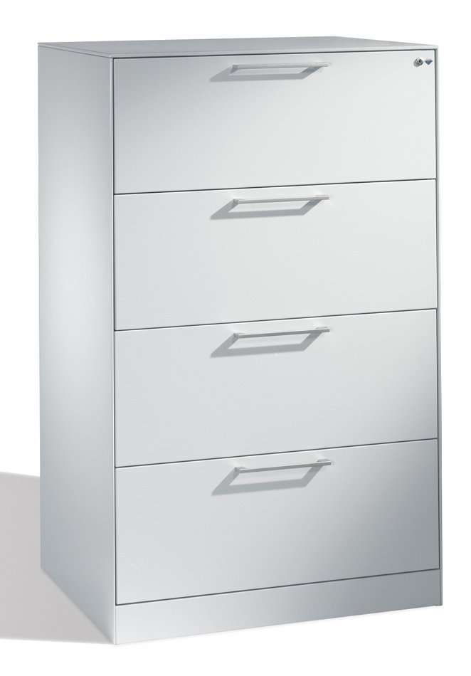 Štvorzásuvkové kovové kartotéky pre dokumenty, závesné zakladače formátu A4 alebo Foolscap. Šírka 413 alebo 470, výška 1321, hĺbka 622 mm, centrálny zámok, rôzne farby. Skladom v šírke 413 mm vo farbách svetlosivá, béžová, sivobiela a biela.