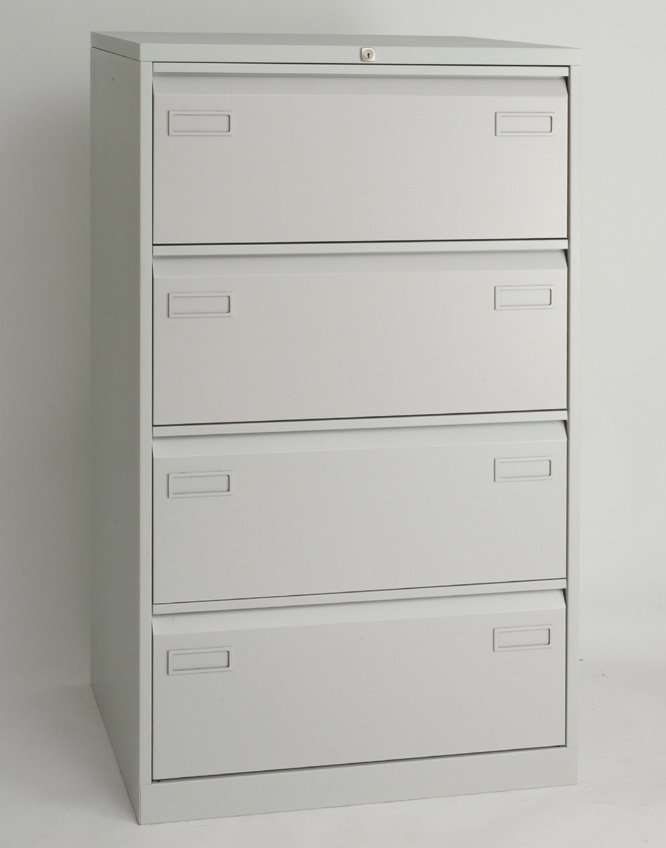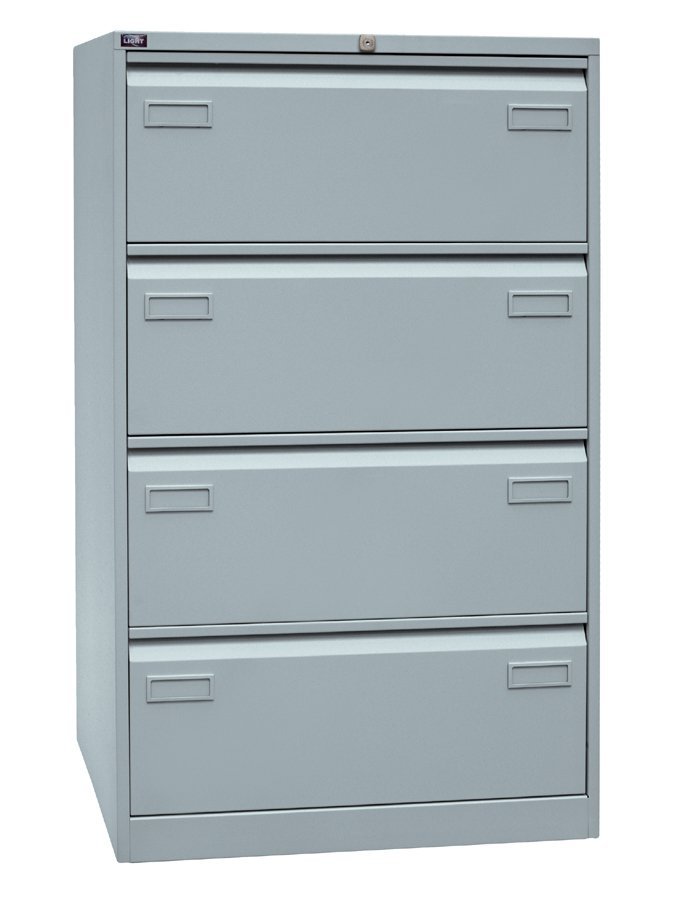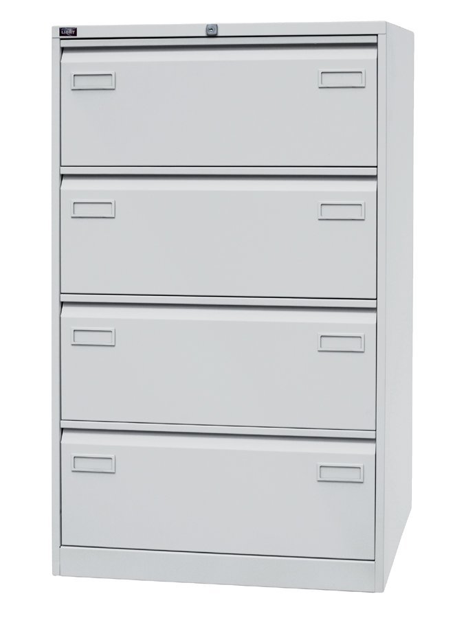 Štvorzásuvková kovová a dvojradová kartotéka pre dokumenty a závesné kapsy formátu A4, šírka 800, výška 1321, hĺbka 622 mm, rôzne farby.