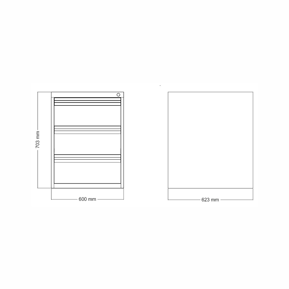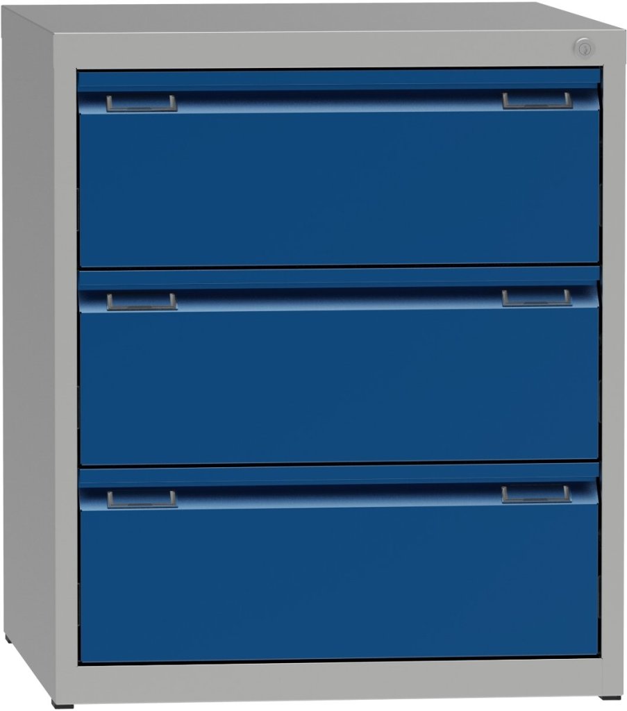 Trojzásuvková kartotéka pre dokumenty formátu A5, B5 a C5. Výška 703 x šírka 600 x hĺbka 623 mm. Plný výsuv zásuviek na kuličkovom vedeniu. Vnútorný rozmer každého oddelenia výška 180 x šírka 252 x hĺbka 496 mm. Ostatné farby na dopyt.