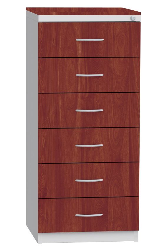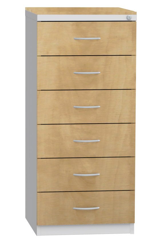 Lístkovnica pre formáty A5 šesťzásuvková (v každej zásuvke sú 2 oddelenia). Výška 1250 x šírka 560 x hĺbka 600 mm. Kovový korpus vo farbe svetlosivej RAL 7035, zásuvky lamino v dezénu buk, breza alebo čerešňa. Centrálny zámok.