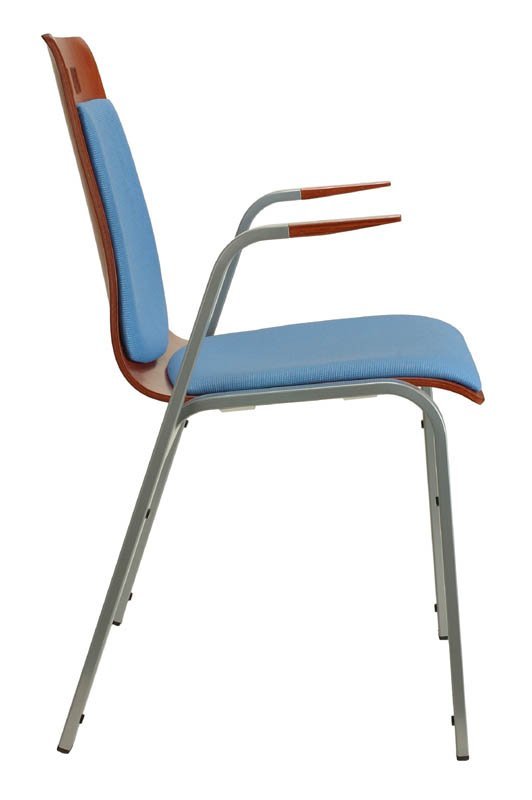 Drevená konferenčná stolička so stabilnou zvarovanou konštrukciou v odtieni buk, čerešňa, orech alebo mahagon s možnosťou čalúnenia sedadla i operadla. Farba kostry čierna, sivá alebo chrom. Varianta s područkami alebo bez.