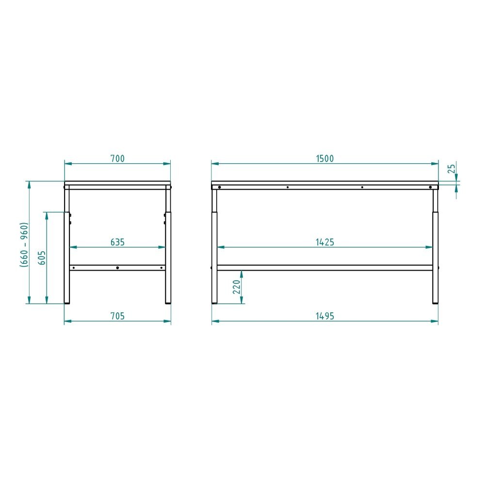 Konštrukcia montovaného výškovo nastaviteľného pracovného stola 1500x700 mm
