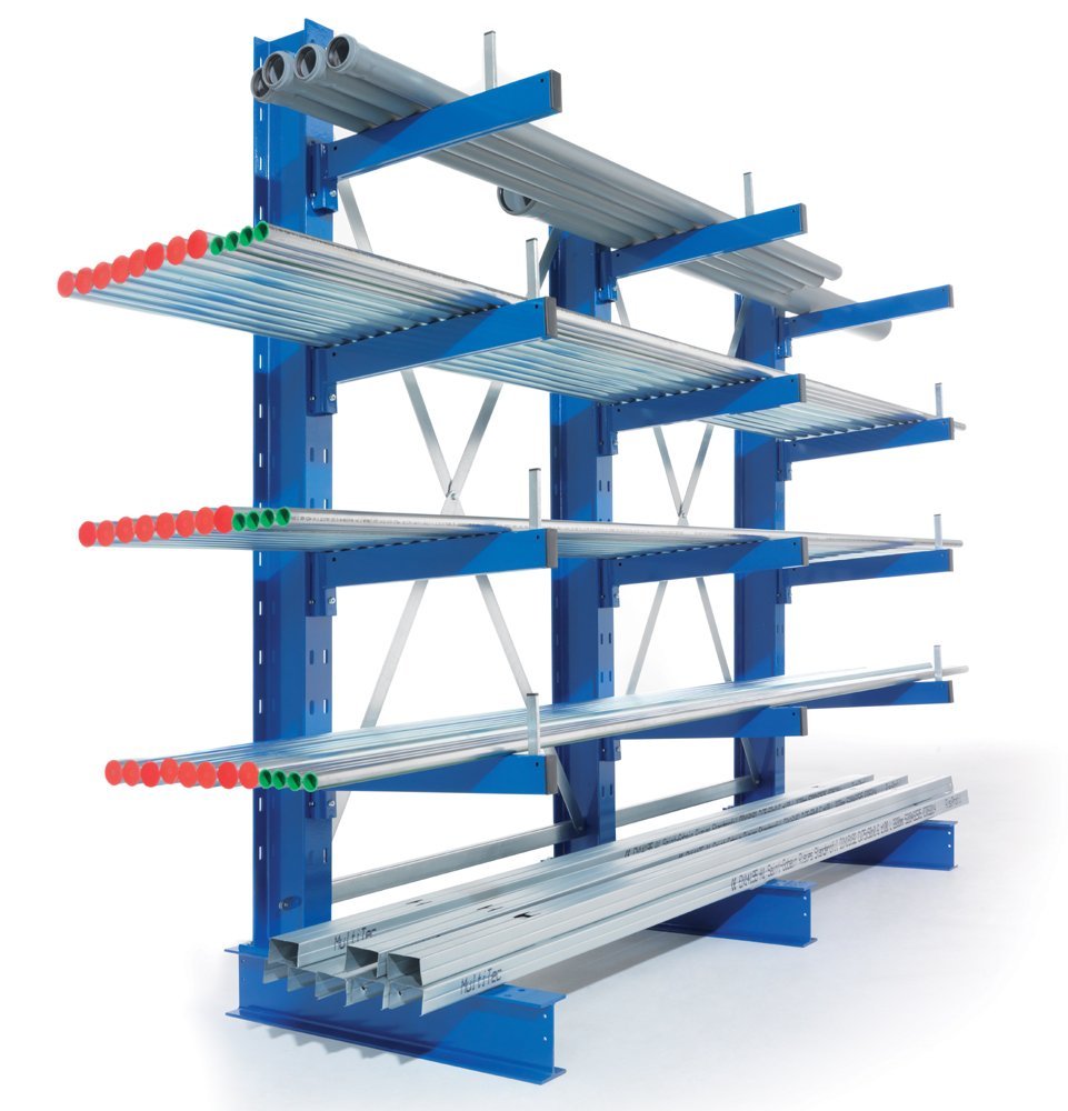 Regály pre stredné zaťaženie pre stojace a ležiace dlhý materiál. Výška 2000 - 3000 mm, šírka 1000 alebo 1300 mm, hĺbka 500 alebo 800 mm, počet ramien 4 - 5 na jednu stojinu, nosnosť ramena 250 alebo 430 kg, nosnosť jednostranné stojiny 1250 - 2340 kg. Hmotnosti regálov mezi 50 - 202 kg. Farba RAL 5010 modrá.
