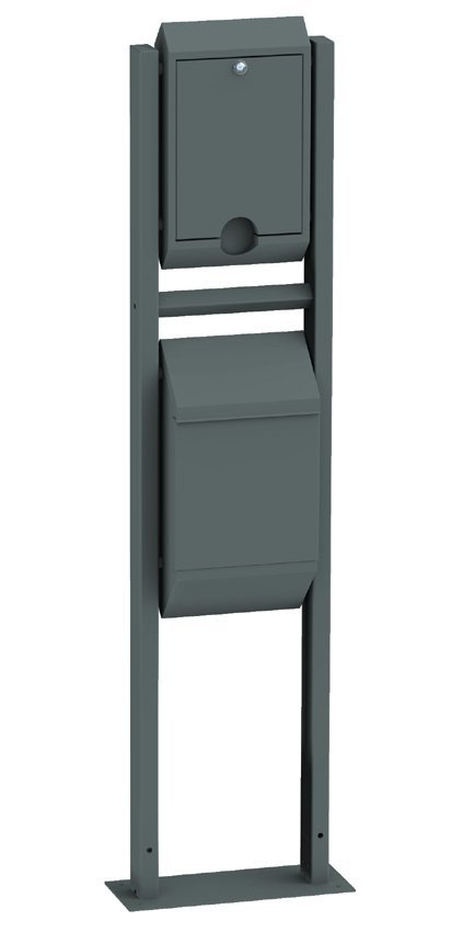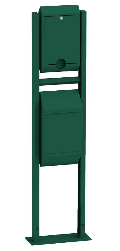 Kôš na psie exkrementy so stojanom. Horná uzamykateľná schránka na vrecká + dolný odpadkový kôš + stojan. Nádoby i stojan sú pozinkované s povrchovou úpravou vonkajšou práškovou farbou pre dlhšiu životnosť.
