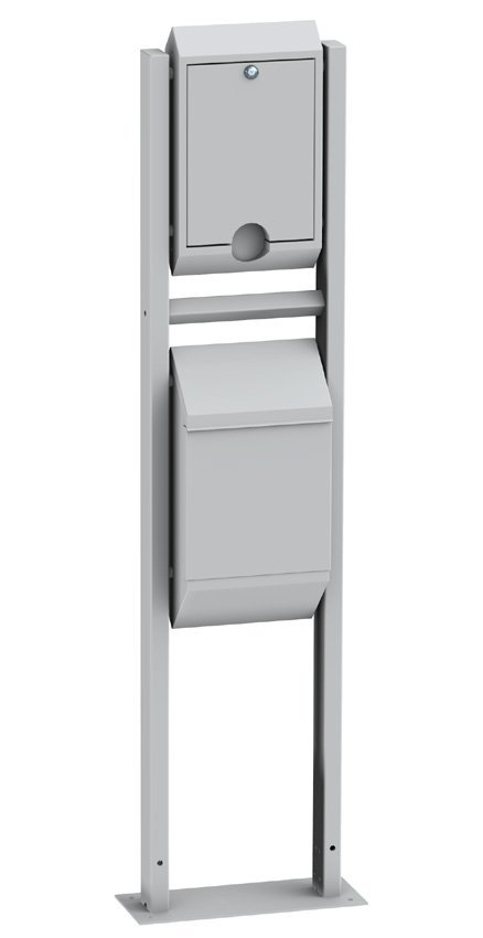 Kôš na psie exkrementy so stojanom. Horná uzamykateľná schránka na vrecká + dolný odpadkový kôš + stojan. Nádoby i stojan sú celý popis a parametre