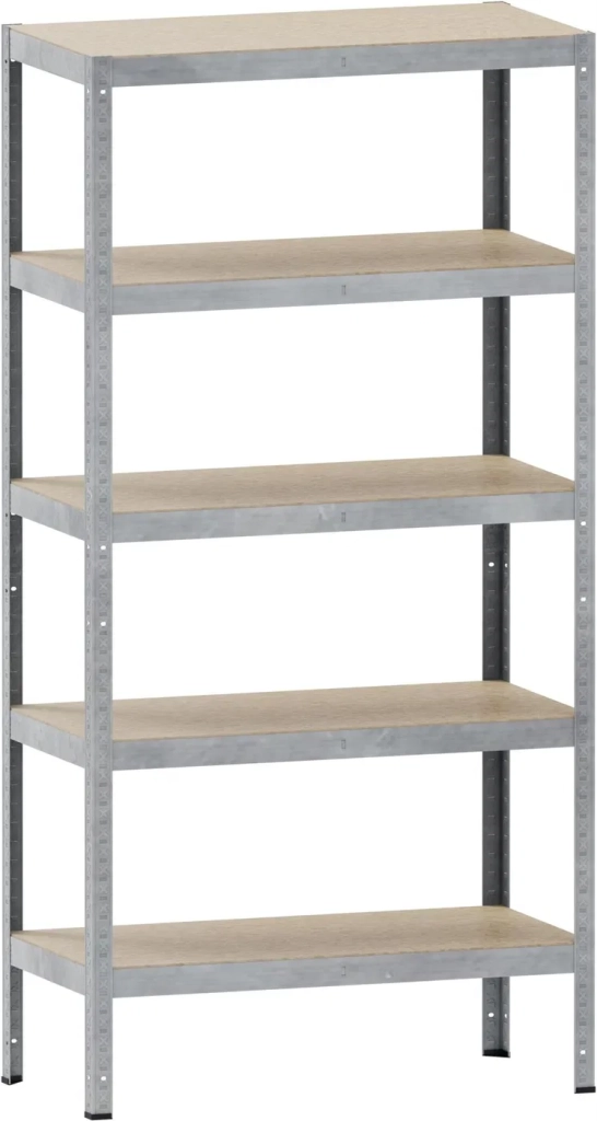 Kovový bezskrutkový regál určený na široké použitie. Nosnosť police stanovená na maximálne rovnomerné zaťaženie 150 kg a slúži na ukladanie stredne ťažkých predmetov. Hĺbka regálu 450 mm, šírka 900 mm, výška 1800 mm, 5 polic.