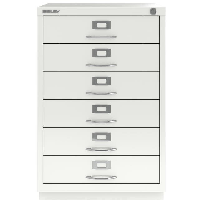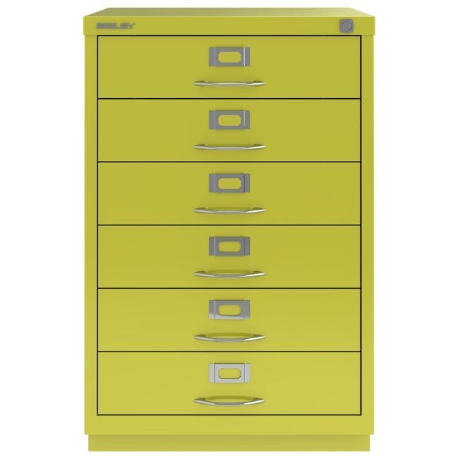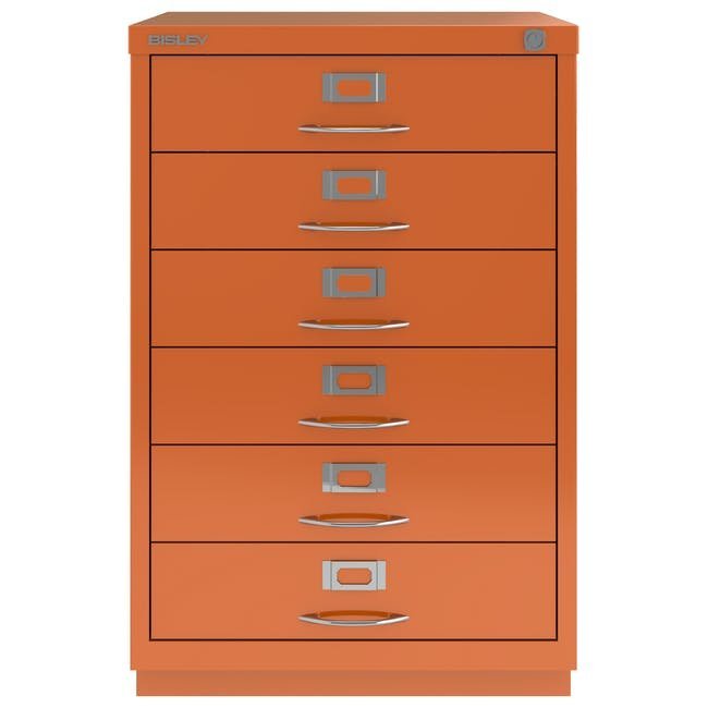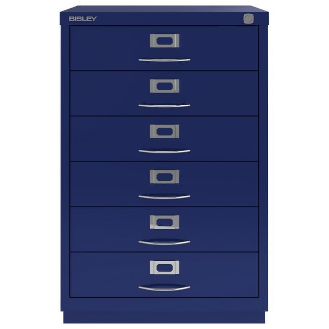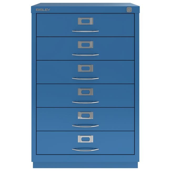 Šesťizásuvkové kovové kartotéky Bisley F6E, šírka 470, výška 711, hĺbka 470 mm, rôzne farby, klasické úchytky chróm.