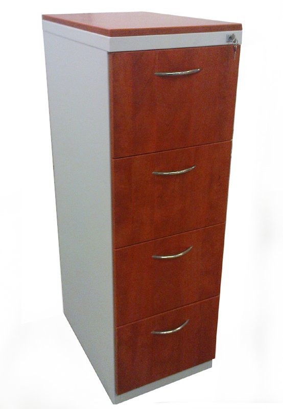 Štvorzásuvková kovová kartotéka Kovos pre dokumenty a závesné kapsy formátu A4. Výška 1250, šírka 404, hĺbka 600 mm. Predné čela zásuviek horná plocha je osadzená laminom v rôznych dezénoch. Farba korpusu RAL 7035 svetlosivá.