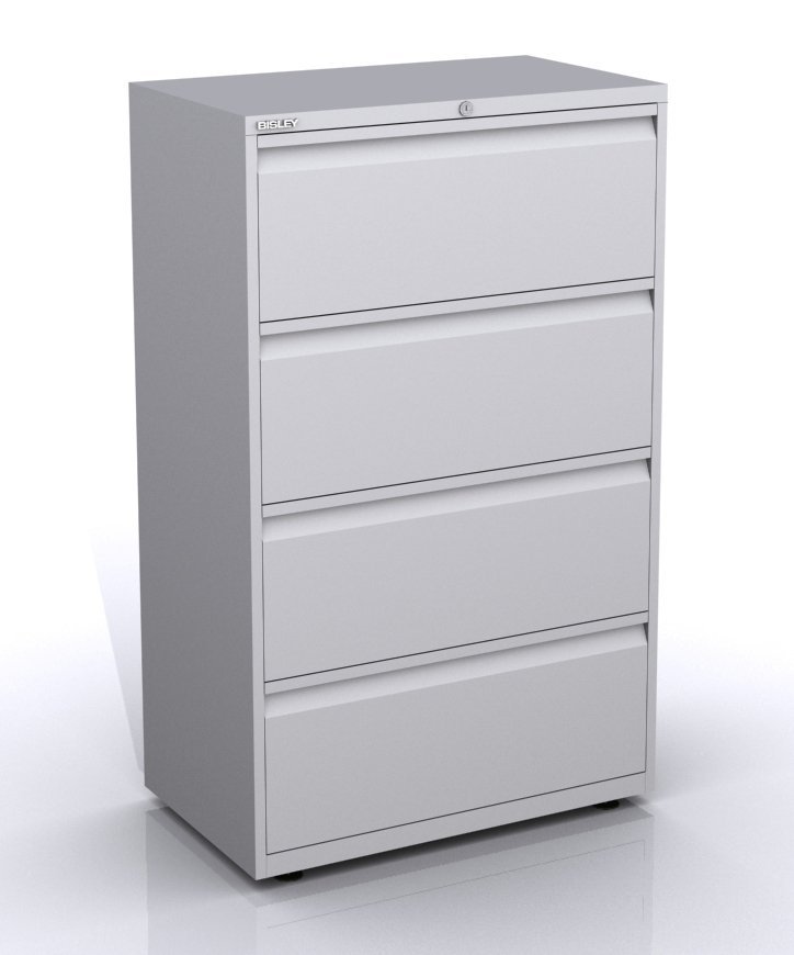 Veľmi kvalitná štvorzásuvková kartotéka pre ukladanie závesných dosák A4 a Foolscap s individuálne uzamykateľnými zásuvkami. Šírka 1000 mm, výška 1301 - 1325 mm, hĺbka 470 mm. vrátane podstavca pre vyrovnanie nerovností podlahy. Vyrobené z plechu hrúbky 0,9 mm.