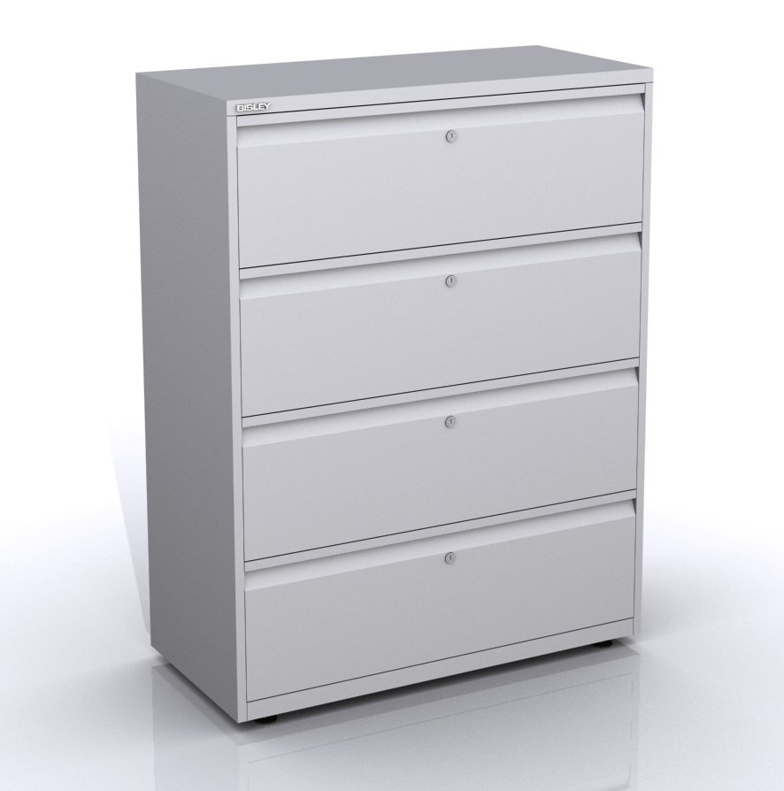 Veľmi kvalitná štvorzásuvková kartotéka pre ukladanie závesných dosák A4 a Foolscap s individuálne uzamykateľnými zásuvkami. Šírka 1000 mm, výška 1301 - 1325 mm, hĺbka 470 mm. vrátane podstavca pre vyrovnanie nerovností podlahy. Vyrobené z plechu hrúbky 0,9 mm.