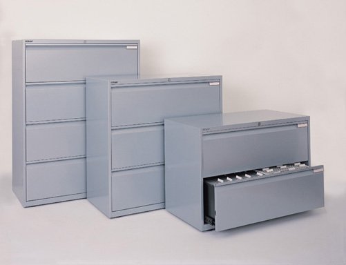 Veľmi kvalitná štvorzásuvková kartotéka pre ukladanie závesných dosák A4 a Foolscap s individuálne uzamykateľnými zásuvkami. Šírka 1000 mm, výška 1301 - 1325 mm, hĺbka 470 mm. vrátane podstavca pre vyrovnanie nerovností podlahy. Vyrobené z plechu hrúbky 0,9 mm.
