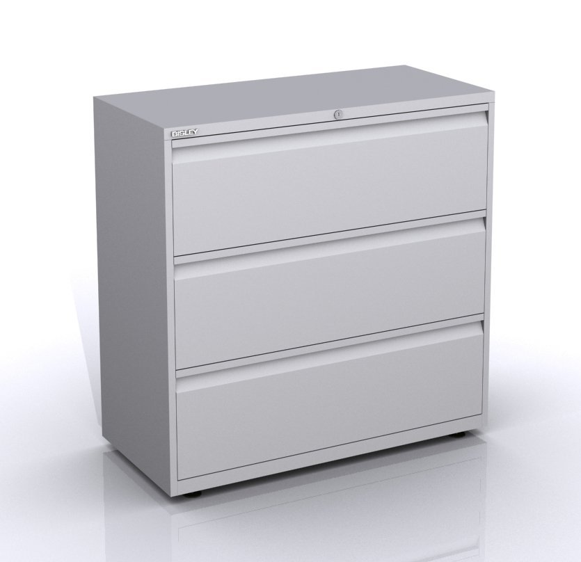 Veľmi kvalitná trojzásuvková kartotéka pre ukladanie závesných dosák A4 a Foolscap s centrálnym zámkom. Šírka 1000 mm, výška 997 -