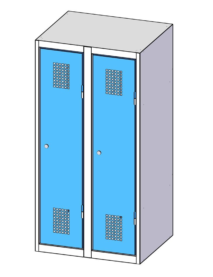 Perforace korpusu - korpus šatníků je opatřen otvory pro spojování šatníků v řadách, otvory pro připevnění soklu nebo šikmé stříšky, otvory pro nasazení na podnož, otvory pro vloženídělící přídavné příčky. |