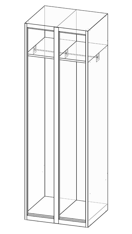 Zvislá medzistena pre šatníkové skrine firmy POLAK. Deliacu stenu je možné objednať a pripevniť dodatočne. Pre výšku šatníkov 1200, 1500 a 1850 mm.