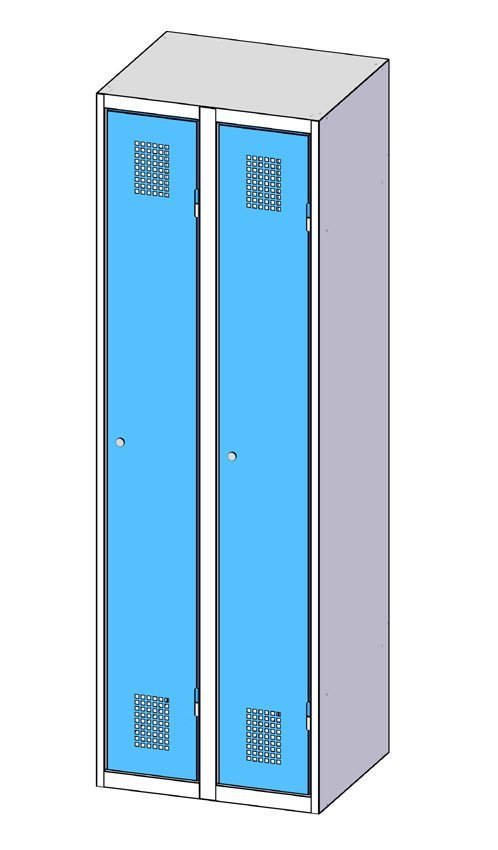 Perforace korpusu - korpus šatníků je opatřen otvory pro spojování šatníků v řadách, otvory pro připevnění soklu nebo šikmé stříšky, otvory pro nasazení na podnož, otvory pro vloženídělící přídavné příčky. |