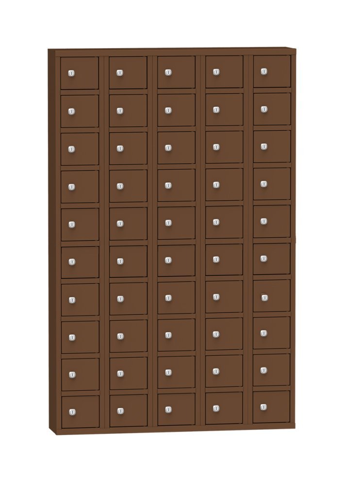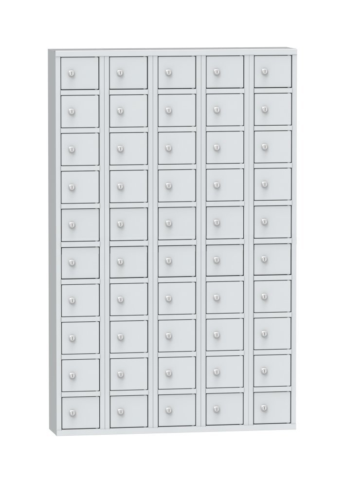 Kovová skrinka s boxami je určená pre úschovu osobných vecí a cenných přesmětu menších rozmerov. Rozmery v. 1530 x š. 975 x hl. 200 mm, 50 oddelení.