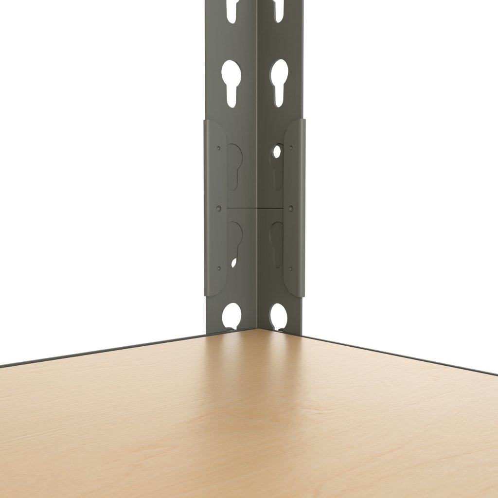 Univerzálny celokovový bezskrutkový regál vhodný do dielní, skladov, kancelárií, garáží či archívov. Vyrobený z kvalitného oceľového plechu, povrchovo upravený sivou práškovou farbou. 5x prestaviteľná polica s výstuhou. Nosnosť police 150 kg. Rozmery regálu (v x š x hl.) 1830 x 1200 x 600 mm. Dodávaný demontovaný.