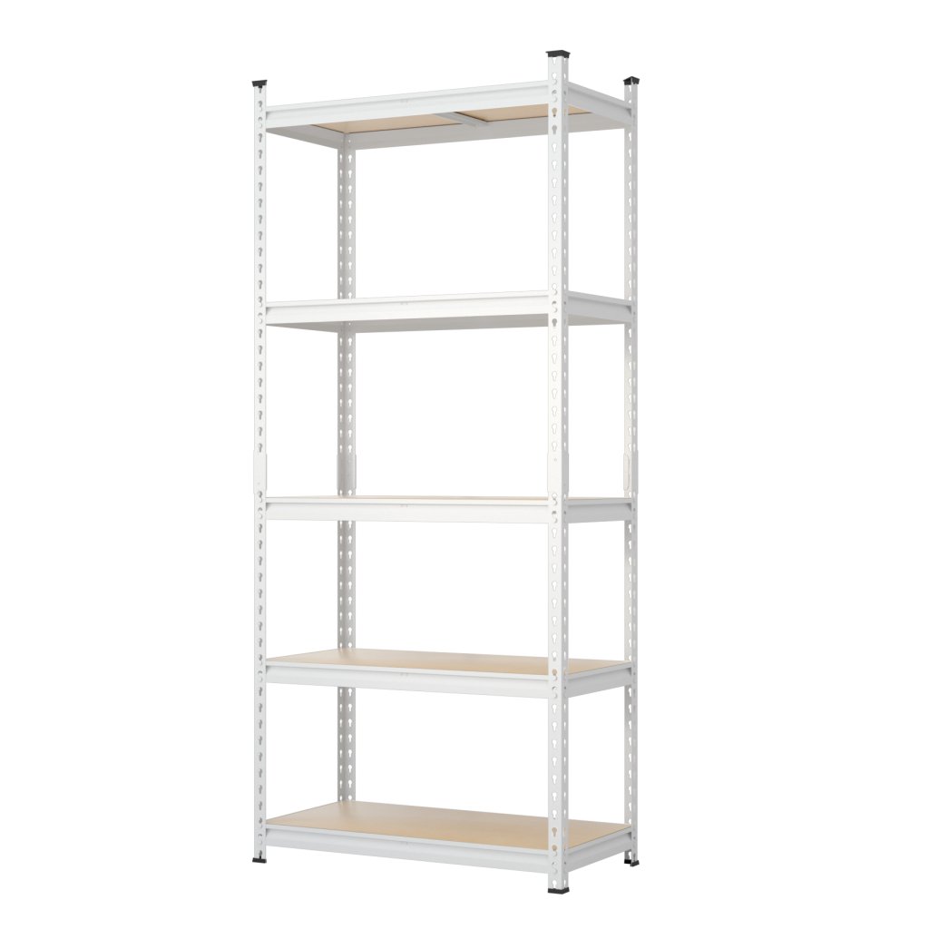 Univerzálny kovový bezskrutkový regál vhodný do dielní, skladov, kancelárií, garáží či archívov. Vyrobený z kvalitného oceľového plechu, povrchovo upravený bielou práškovou farbou. 5x prestaviteľná MDF polica s výstuhou. Nosnosť police 175 kg. Rozmery regálu (v x š x hl.) 1830 x 800 x 500 mm. Dodávaný demontovaný.