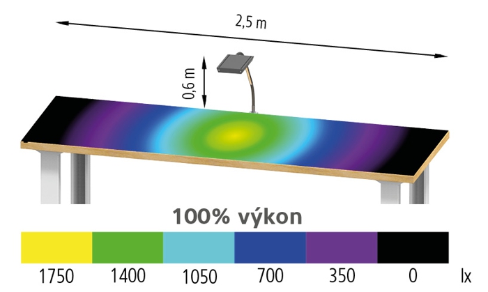 intenzita svetla Emax. (0,6 m nad pracovnou plochou) |