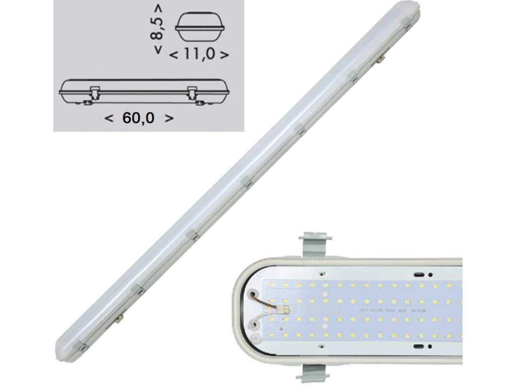 Kvalitné žiarivkové svetlo s výkonom 20W. Perfektný pre vonkajšie osvetlenie a miesto klasických žiariviek. Teleso je prachotesné a vodeodolné, hodí sa aj do náročných priemyselných podmienok. Chromatickosť 4100 K, napájanie 230 V. Rozmery 105 x 600 x 135 mm, hmotnosť 1,25 kg.