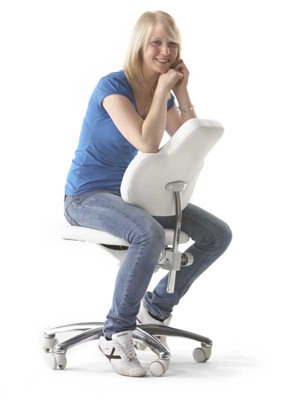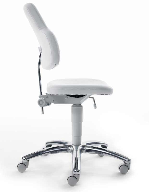 Multifunkčná stolička Medmax. Veľký čalúnený sedák i chrbát s možnosťou rôzneho spôsobu sedenia vďaka dômyslnému tvarovaniu. Križ celý popis a parametre