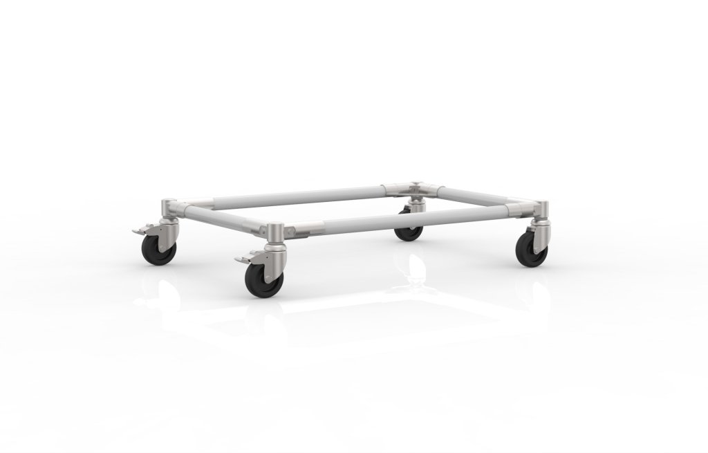 Manipulačný podvozok vyrobený z rúrkového systému je vhodný pre rôzne manipulačné účely v skladoch aj dielňach. Súčasťou podvozku sú 2 otočné kolieska s brzdou a 2 otočné kolieska bez brzdy s priemerom 75 mm, ktoré umožňujú ľahkú manipuláciu s predmetmi. Vnútorný rozmer je navrhnutý pre bedňu o rozmeroch 600 x 400 mm. Rozmery 678 x 478 x 138 mm.