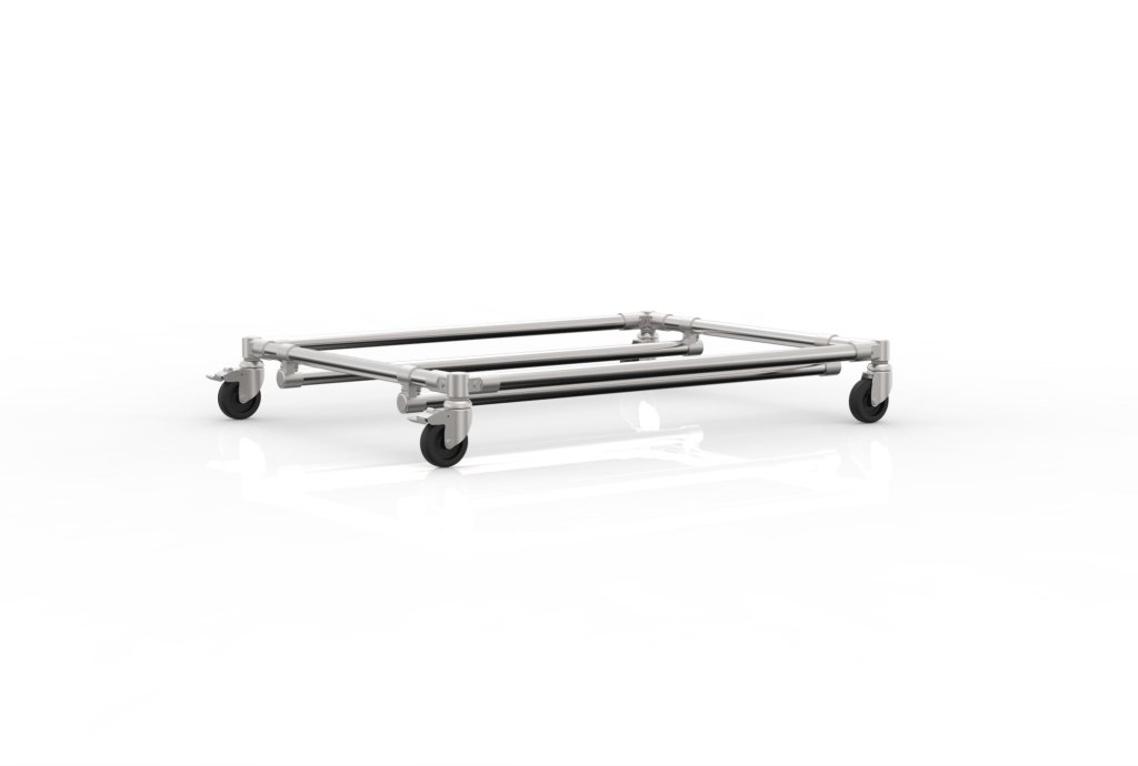 Manipulačný podvozok vyrobený z rúrkového systému je vhodný pre rôzne manipulačné účely v skladoch aj dielňach. Súčasťou podvozku sú 2 otočné kolieska s brzdou a 2 otočné kolieska bez brzdy s priemerom 75 mm, ktoré umožňujú ľahkú manipuláciu s predmetmi. Vnútorný rozmer je navrhnutý pre 2 bedne o rozmeroch 600 x 400 mm. Rozmery 878 x 678 x 138 mm.