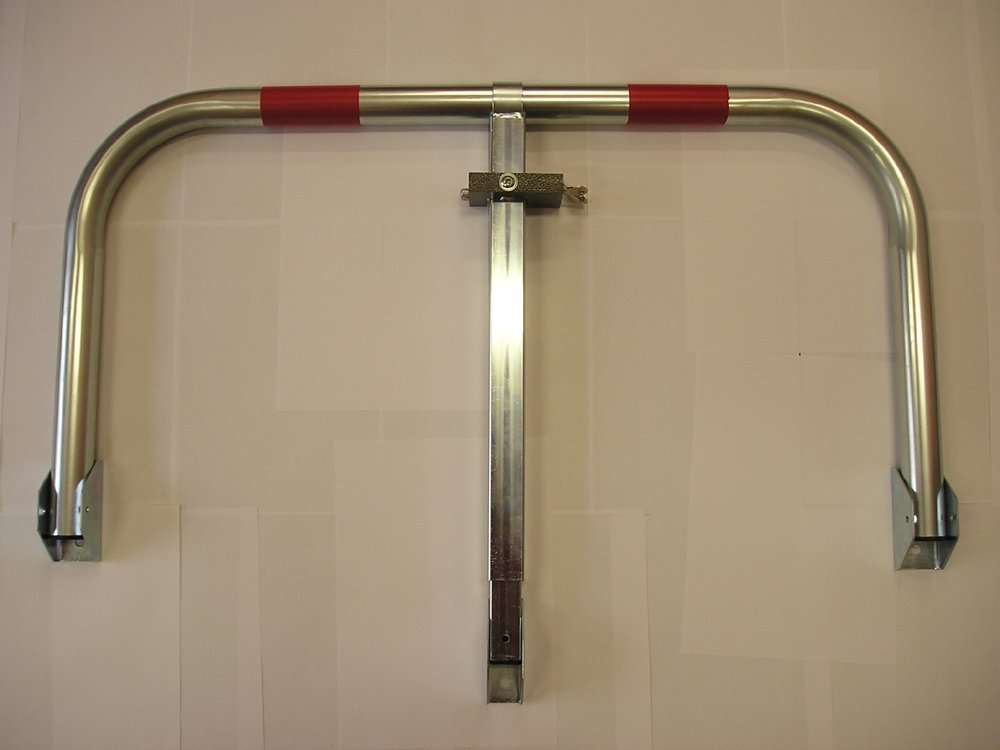 Mechanická sklopná parkovacia zábrana s povrchovou úpravou pozinok. Zamykateľná visacím zámkom, ktorý je súčasťou balenia. Dodanie vrátane upevňovacieho materiálu. Šírka 890 mm, výška 445 mm, hĺbka 400 mm.