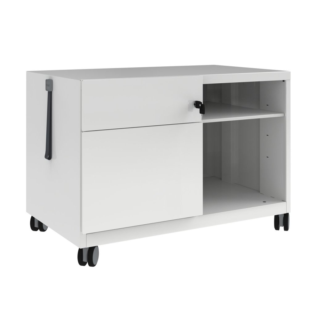 Mobilný stolový kontajner Caddy z kolekcie Be by Bisley rôznej šírky. Kontajner v ľavom prevedení, výška 563 x šírka 800 x hĺbka 490 mm, štandardne na kolieskach.