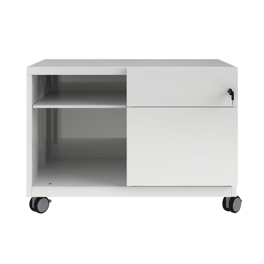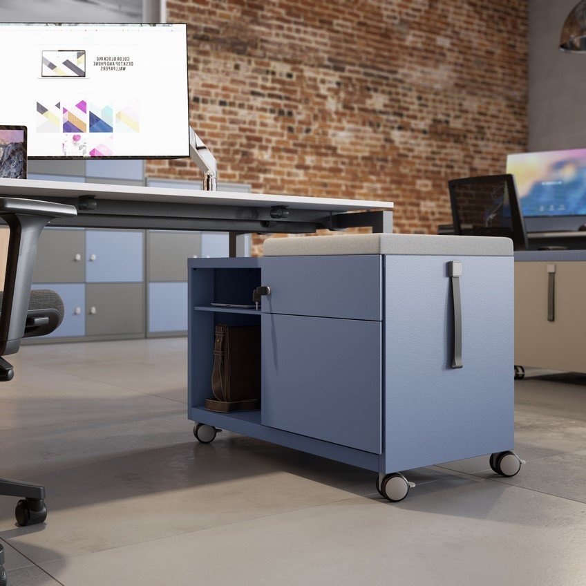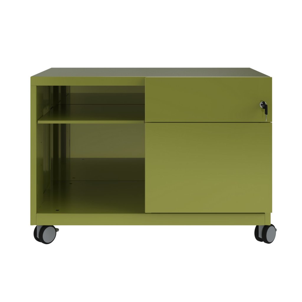 Mobilný stolový kontajner Caddy z kolekcie Be by Bisley v pravom prevedení. Výška 563 x šírka 800 x hĺbka 490 mm, kontajner je štandardne na kolieskach.
