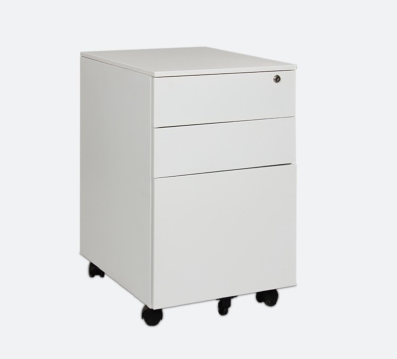 Mobilný trojzásuvkový kontajner z oceľového plechu hrúbky 0,6 mm. Výška 595 x šírka 390 x hĺbka 500 mm, hmotnosť 18 kg, centrálny zámok. Povrchová úprava bielou práškovou farbou.