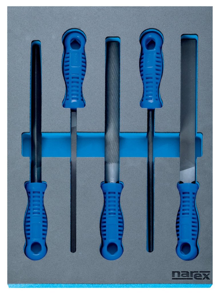 5dielna súprava pilníkov dielenských uložená v penovej podložke. Veľkosť 270 x 390 mm.