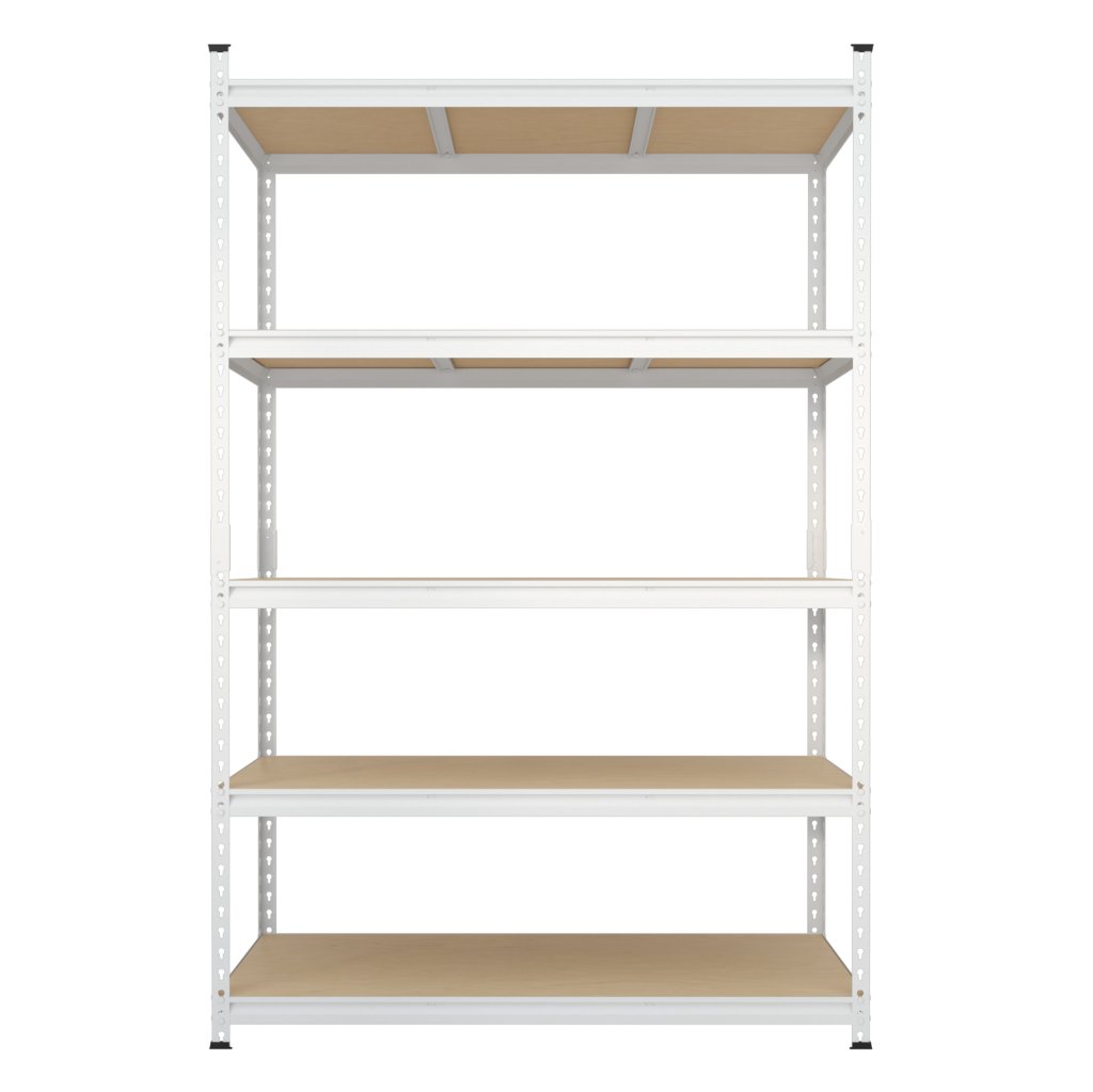 Univerzálny kovový bezskrutkový regál vhodný do dielní, skladov, kancelárií, garáží či archívov. Vyrobený z kvalitného oceľového plechu, povrchovo upravený bielou práškovou farbou. 5x prestaviteľná MDF polica s výstuhou. Nosnosť police 175 kg. Rozmery regálu (v x š x hl.) 1830 x 1200 x 600 mm. Dodávaný demontovaný.