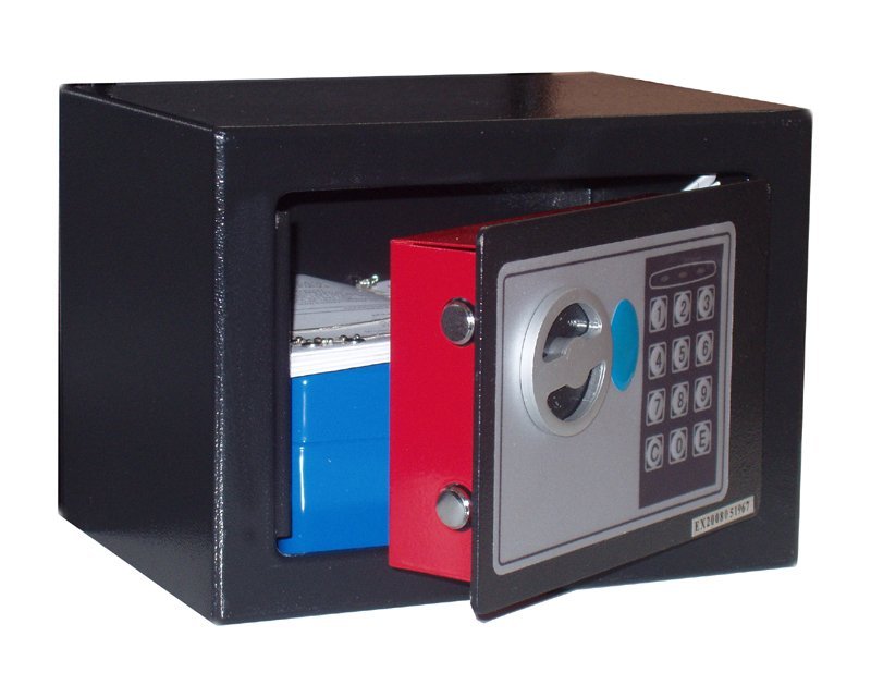 Nábytkový sejf Dagobert, šírka 230, výška 170, hĺbka 160 mm. Najmenší sejf s elektronickým zámkom. Farba čierna. NOVÝ - zákazník celý popis a parametre