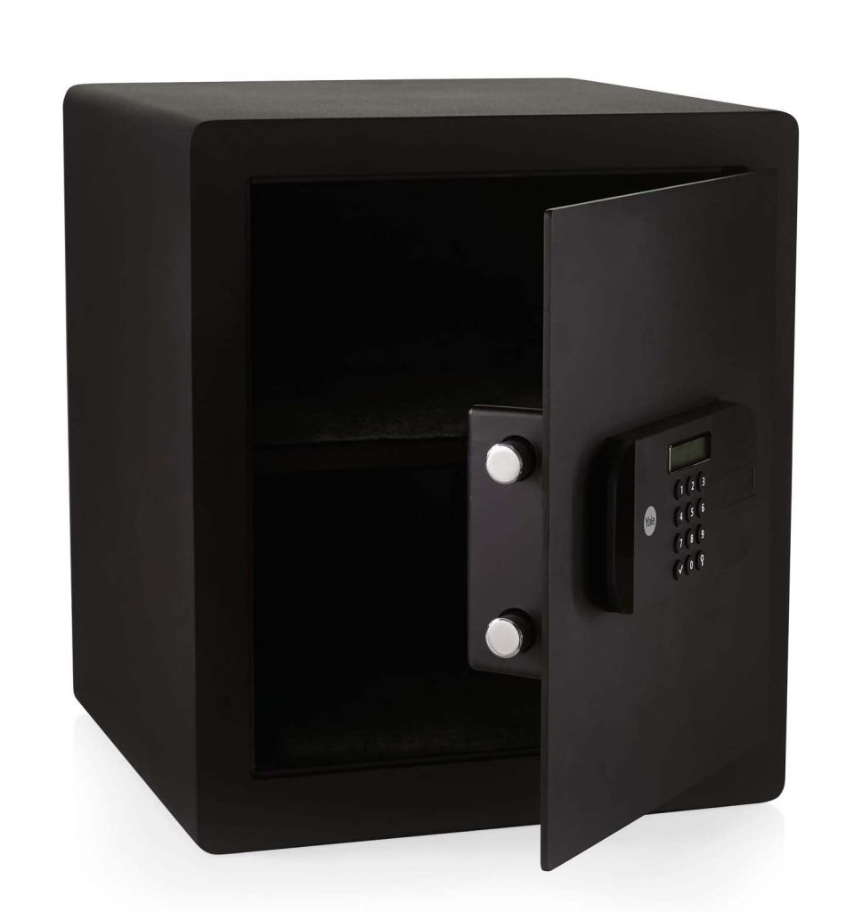 Nábytkový sejf Yale High Security s automatickým otváraním dverí. Zamykanie na elektronický kód s možnosťou núdzového otvorenia pomocou kľúča s dvojitým profilom. Výška 250 x šírka 350 x hĺbka 300 mm, hmotnosť 12,1 Kg, objem 20 l.
