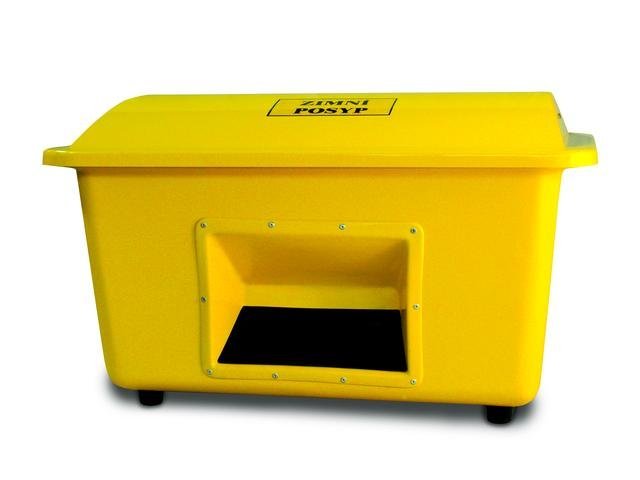 Nádoby na zimný posyp sú určené na skladovanie posypového materiálu (piesok, štrk, sol a pod.). Nádoby sú vyrobené z odolného sklolaminátu s pántami z nehrdzavejúcej ocele. Farba žltá. Objem 220 l, rozmery v. 650 x š. 885 x hl. 585 mm.
