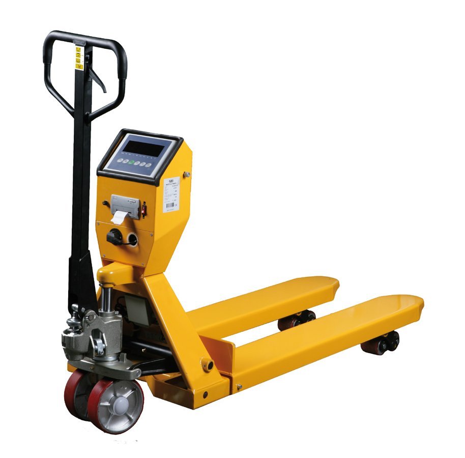 Ručný paletový vozík s váhou, nosnosť 2000 kg, šírka vidlice 560 mm, dĺžka naberacej vidlice 1220 mm. Určený na prepravu na EURO paletách príp. na paletách a plošinách obdobných rozmerov prispôsobených k naberaniu na zdvižnú vidlicu.