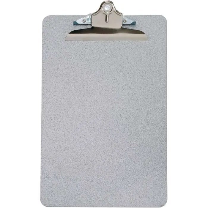 Oceľová písacia podložka s robustným kovovým klipom a zaguľatenými rohmi. Formát A4. Rozmery podložky 230 x 358 mm.