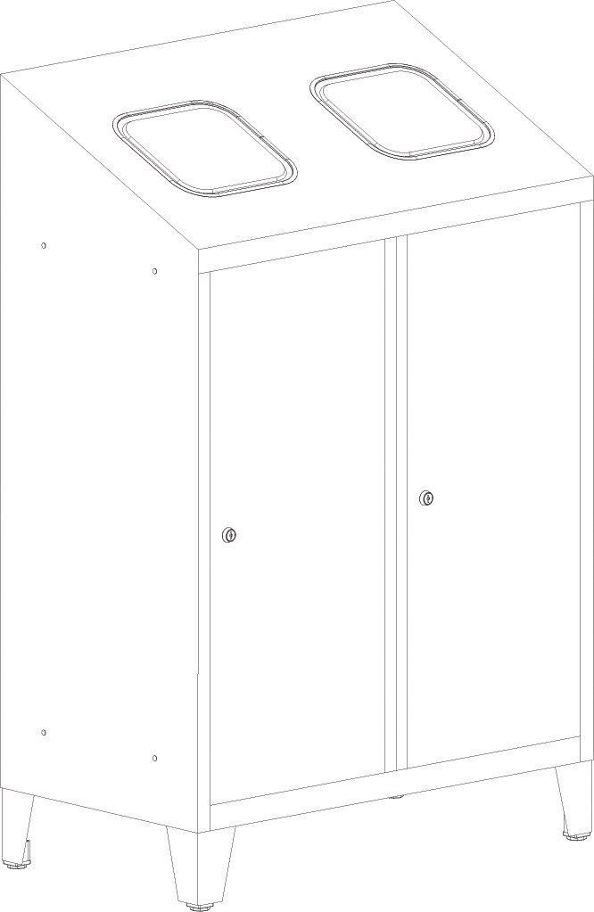 Odpadkový kôš pre vnútorné použitie. Na plast, papier, sklo. Korpus z 0,6 - 0,8 mm hrubého oceľového plechu, uzamykanie celý popis a parametre