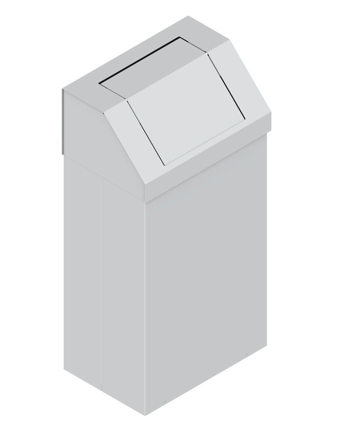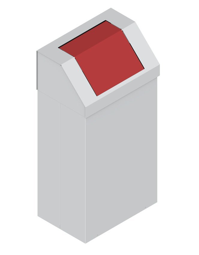 Kovový odpadkový kôš vhodný na triedený odpad. Výška 900 x šírka 450 x hĺbka 300 mm, objem 90 l. Farba koša svetlosivá RAL 7035, rôzne farby veka pre rozlišenie druhu odpadu. Iba pre vnútorné použitie.
