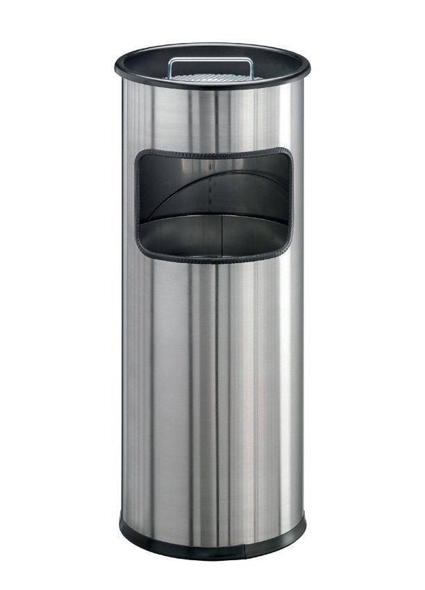 - guľatý kovový kôš z nehrdzavejůcej ocele s popolníkom