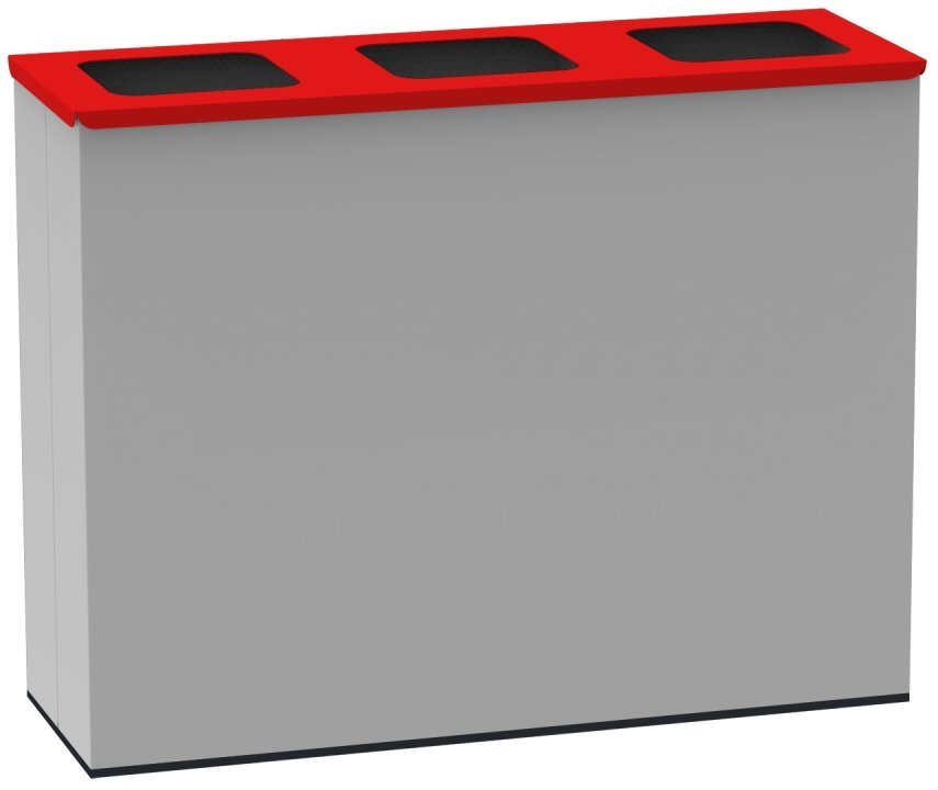 Hranatý stabilný kôš vhodný pre triedenie odpadu. Výška 700 x šírka 210 x hĺbka 210 mm, objem 28 l. Farba koša svetlosivá RAL 7035, veko s kruhovým vhozom o ø 150 mm v rôznych farbách pre rozlíšenie druhu odpadu. Len pre vnútorné použitie.